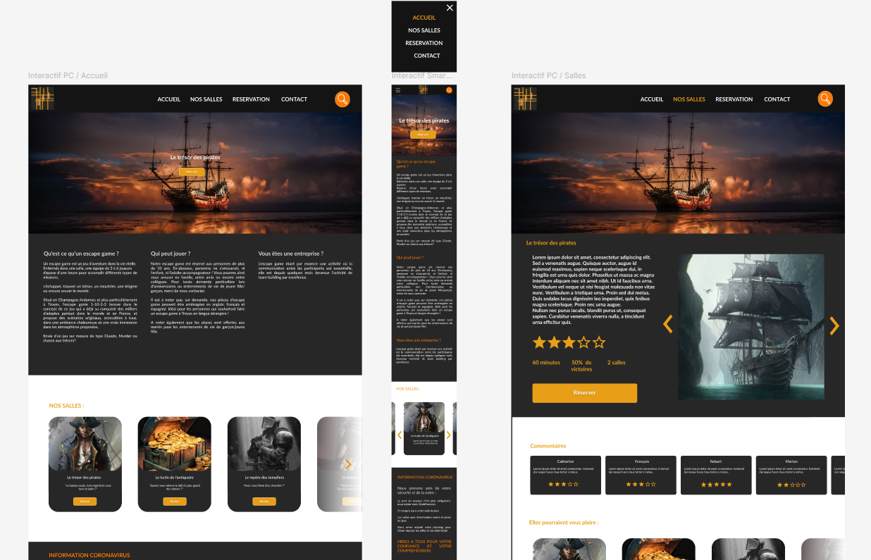 Wireframe pour un site d'escape game